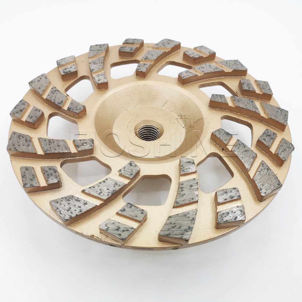 This type diamond cup wheel is designed for fast grinding concrete, screed , masonry, and terrazzo materials and also for glue removal.